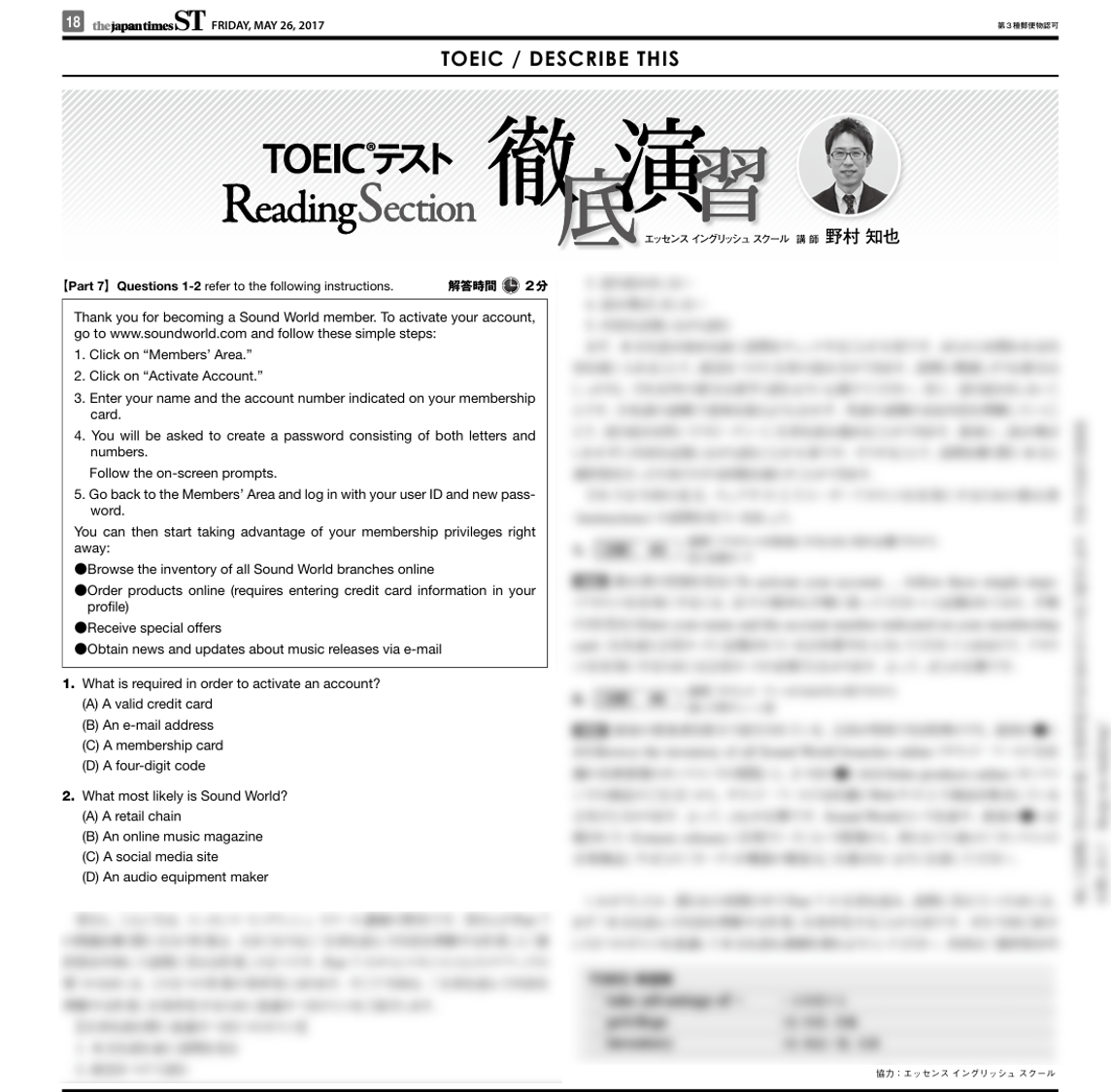 Reading Section 徹底演習(Part 7)2017.5.26